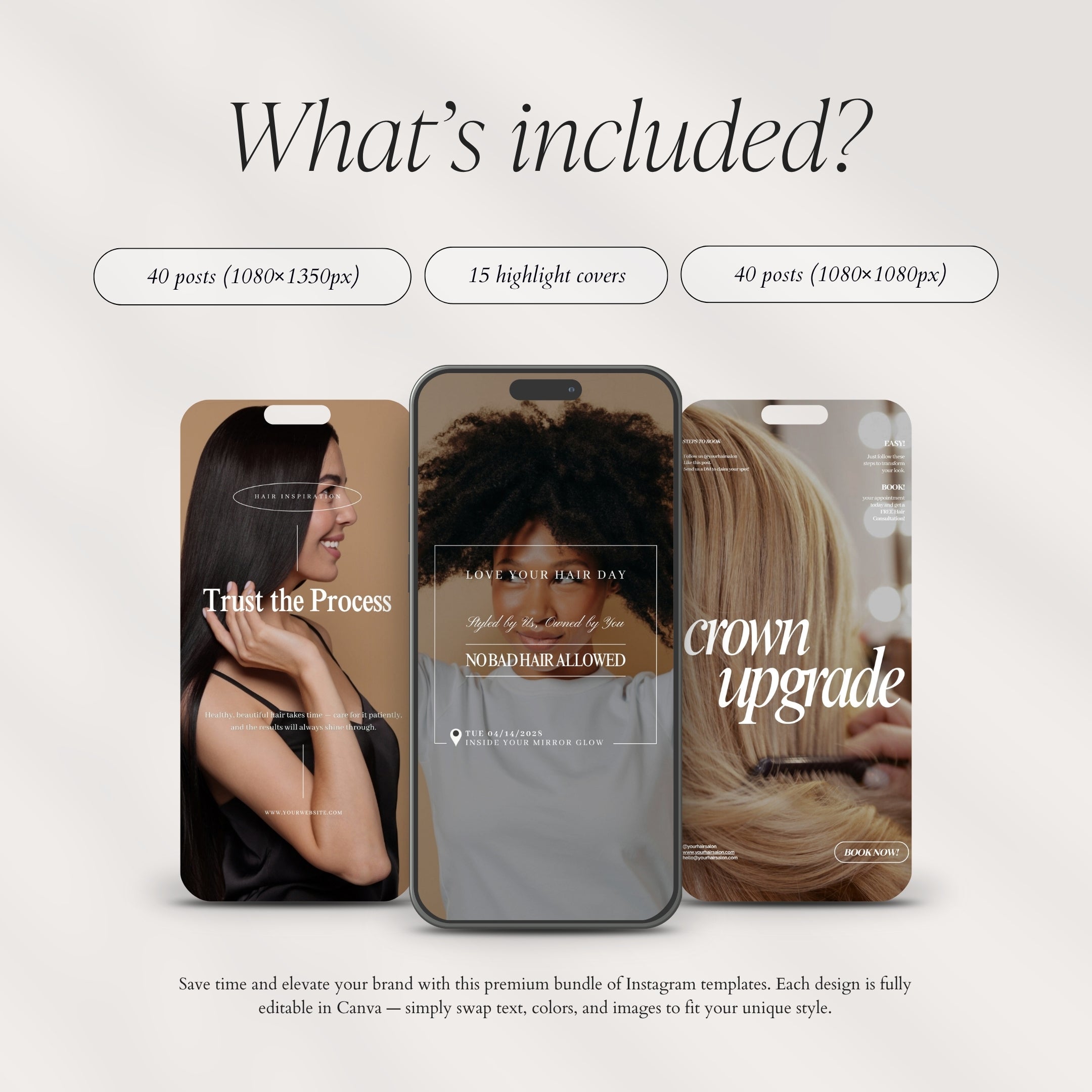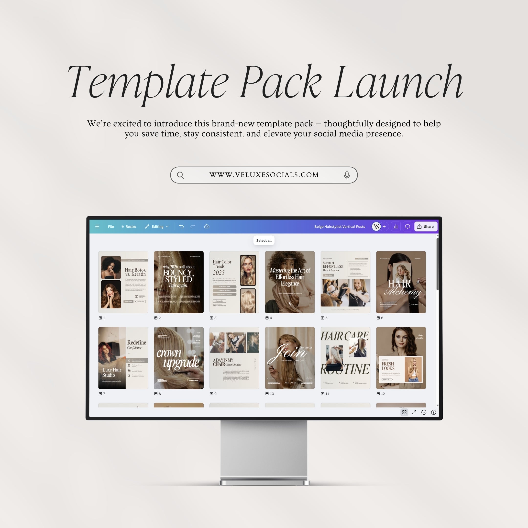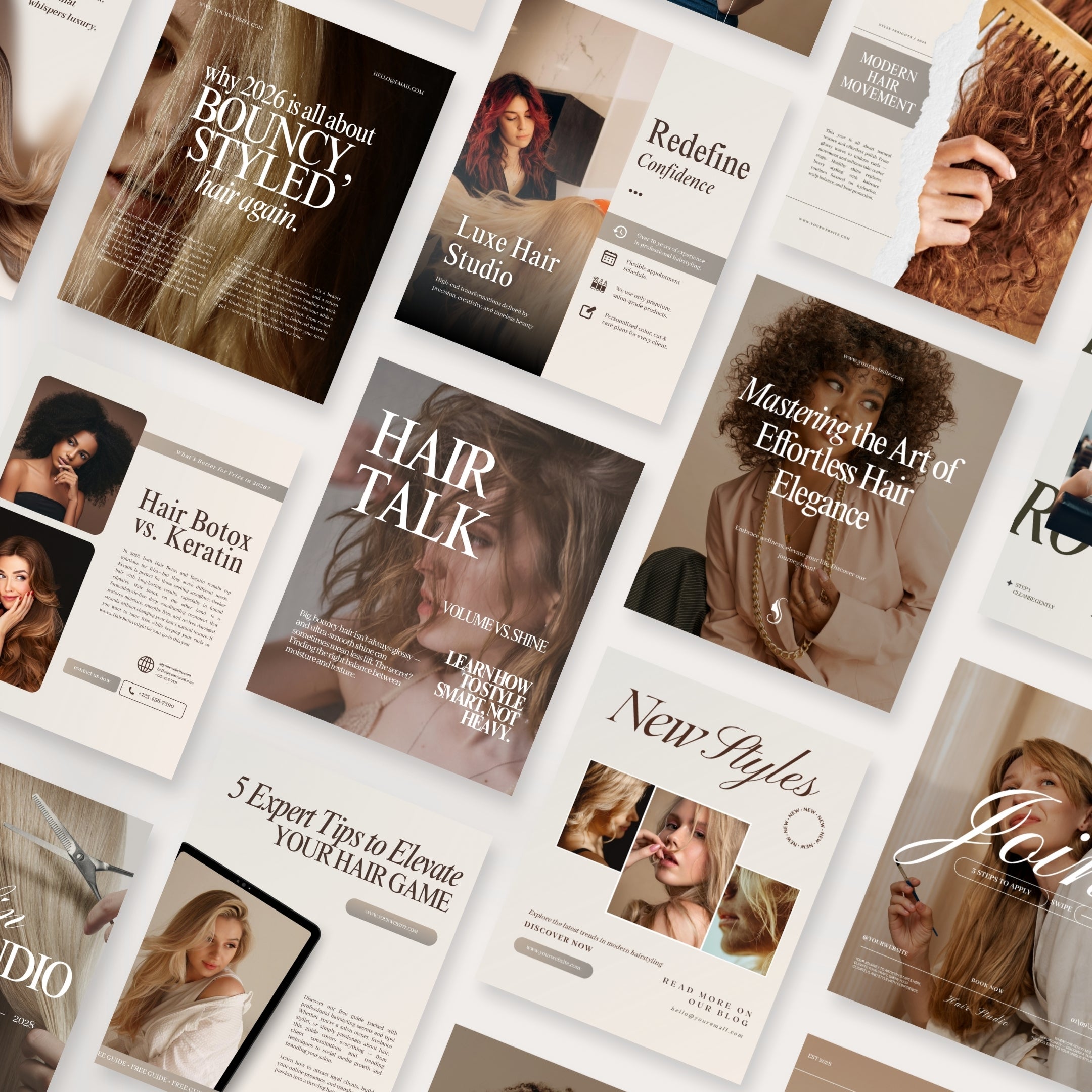 Level up your HairStyling&Coloring business with these social media templates designed in Canva. Save hours on content creation, showcase your work beautifully, attract your ideal clients, and grow your brand with ease.