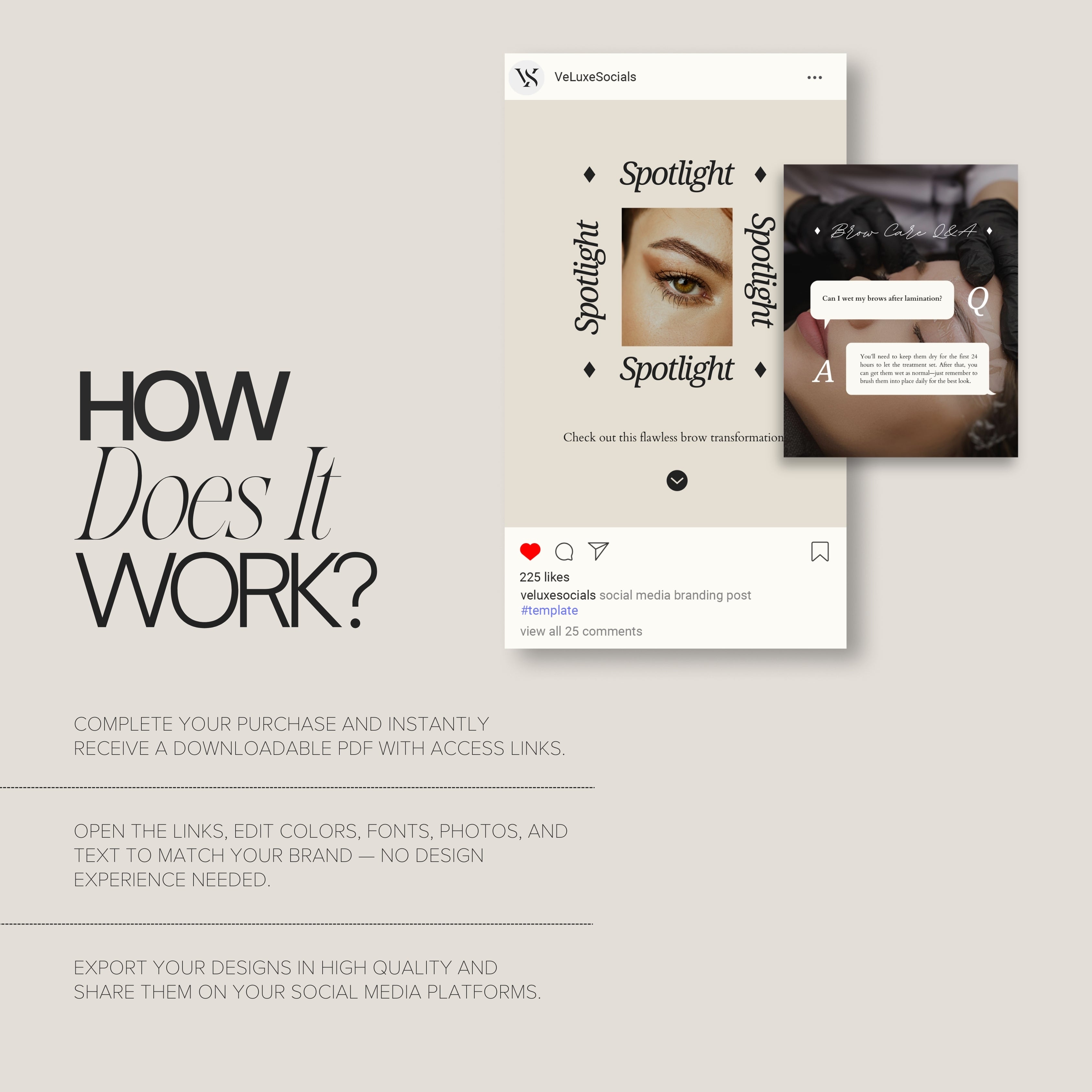 After purchase, you will receive instant access to a downloadable PDF containing the template links. Open the links in Canva, customize the designs by adjusting photos, fonts, colors, and text, then download and publish them on your social media.