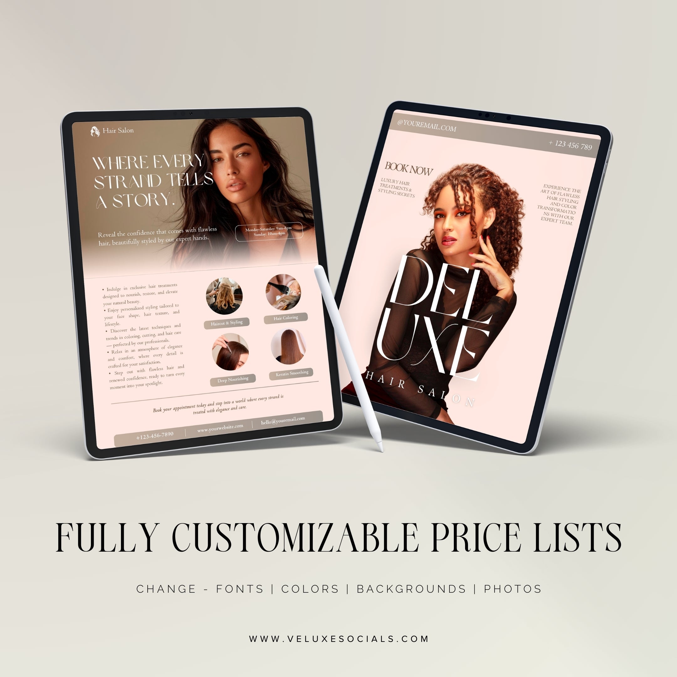 Create smarter and work faster with this step-by-step Hairstylist Flyer Bundle. Perfect for new and experienced stylists, these editable Canva templates help you easily showcase your services, prices, and salon branding in a modern, professional way.