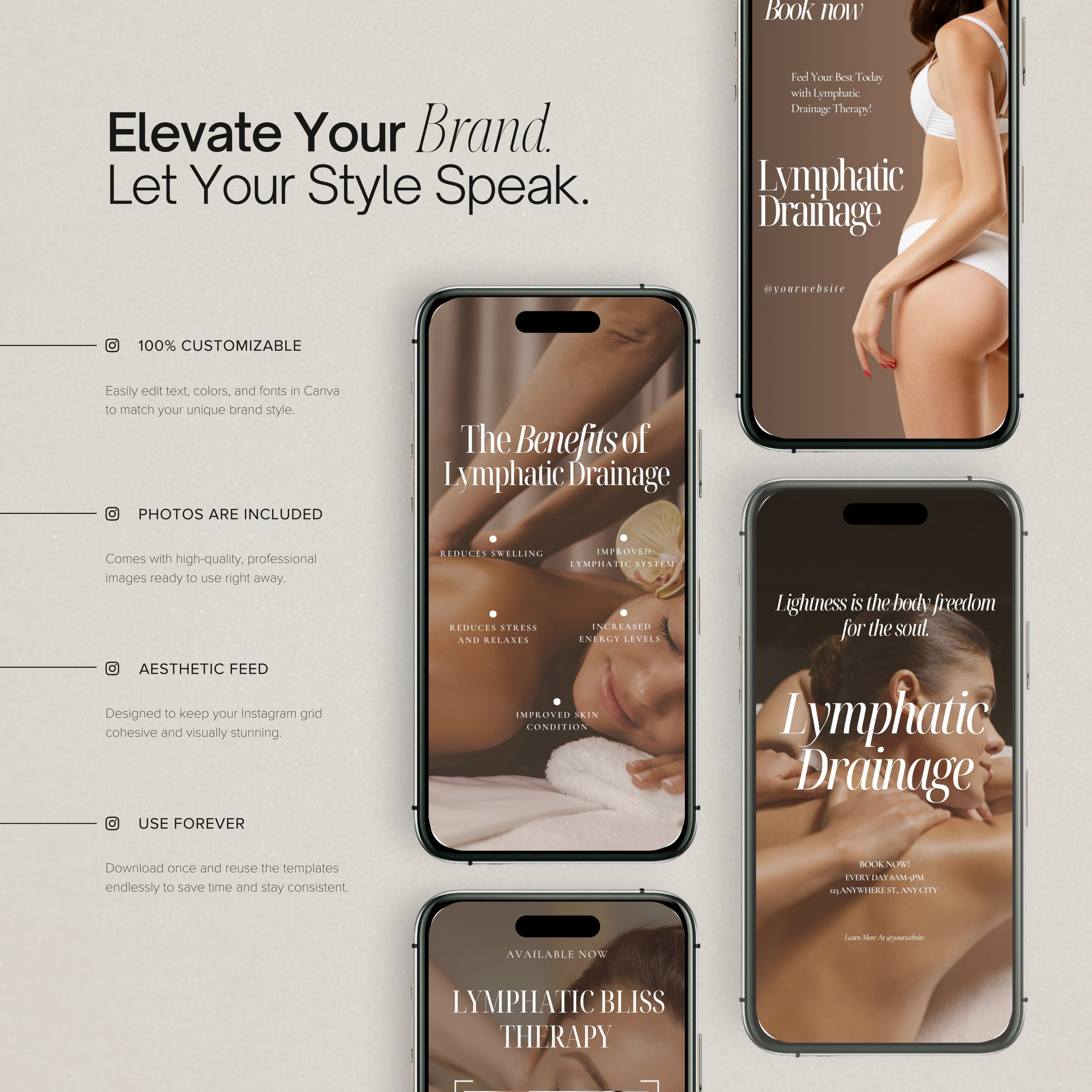 After purchase, you will receive instant access to a downloadable PDF containing the template links. Open the links in Canva, customize the designs by adjusting photos, fonts, colors, and text, then download and publish them on your social media.