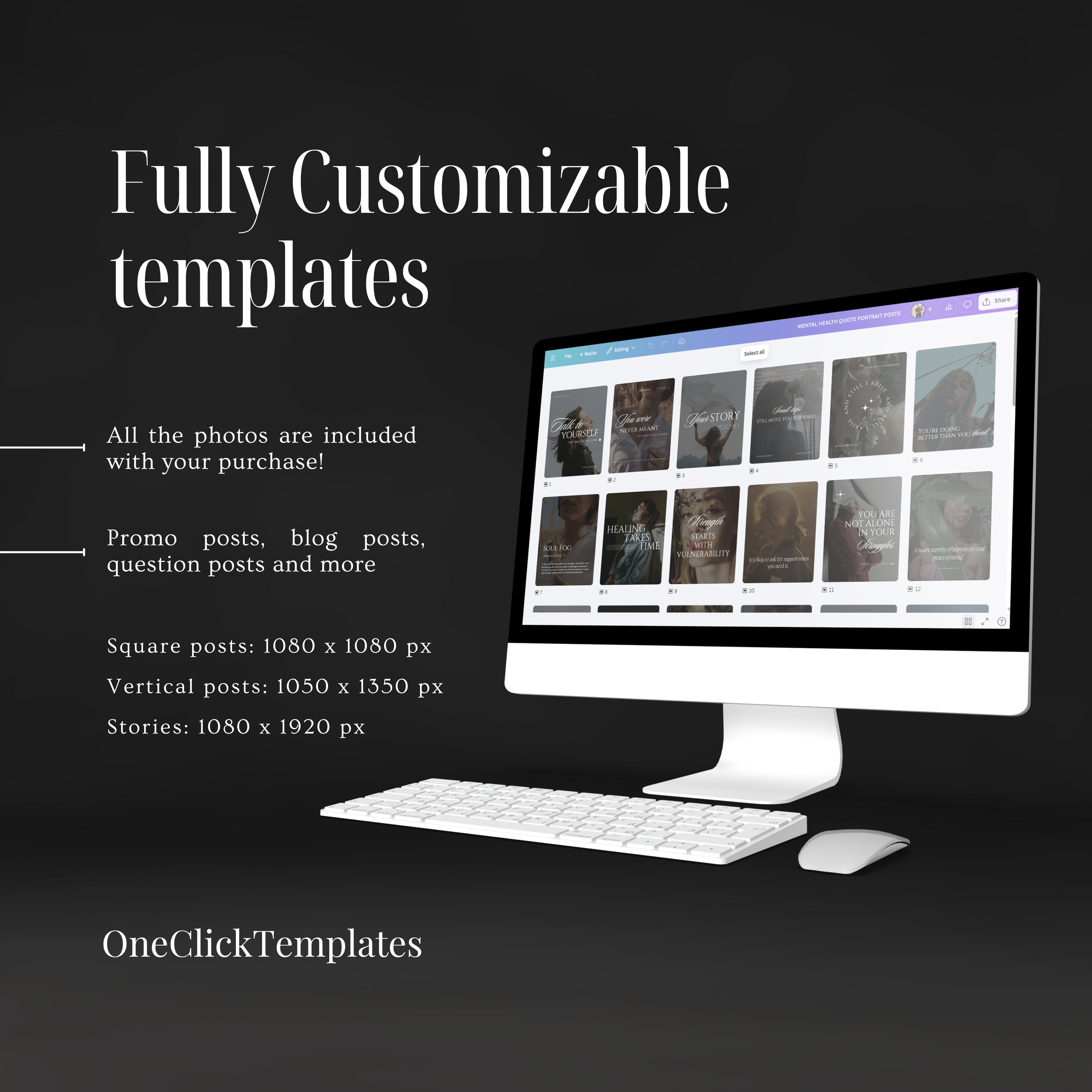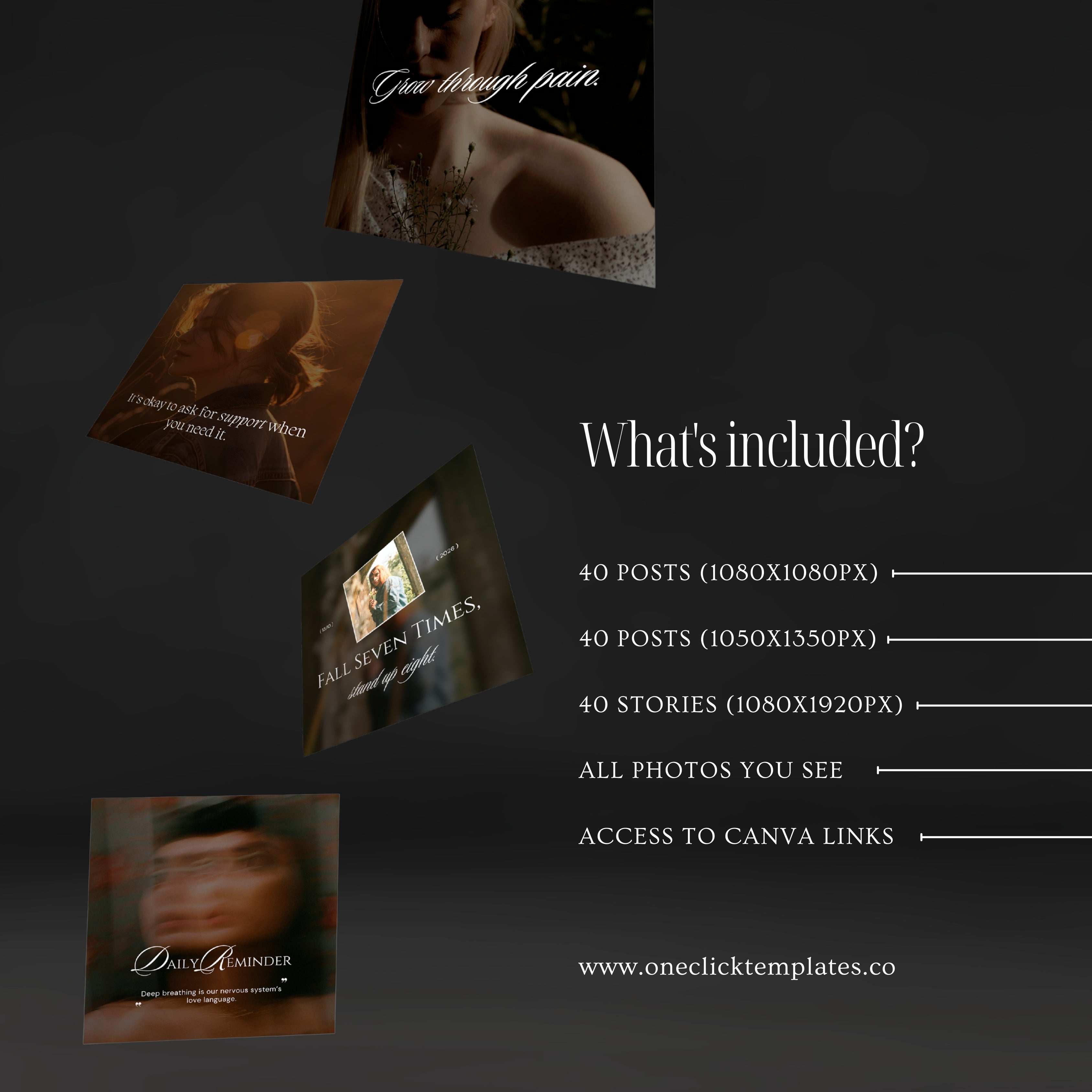 After purchase, you will receive instant access to a downloadable PDF containing the template links. Open the links in Canva, customize the designs by adjusting photos, fonts, colors, and text, then download and publish them on your social media.
